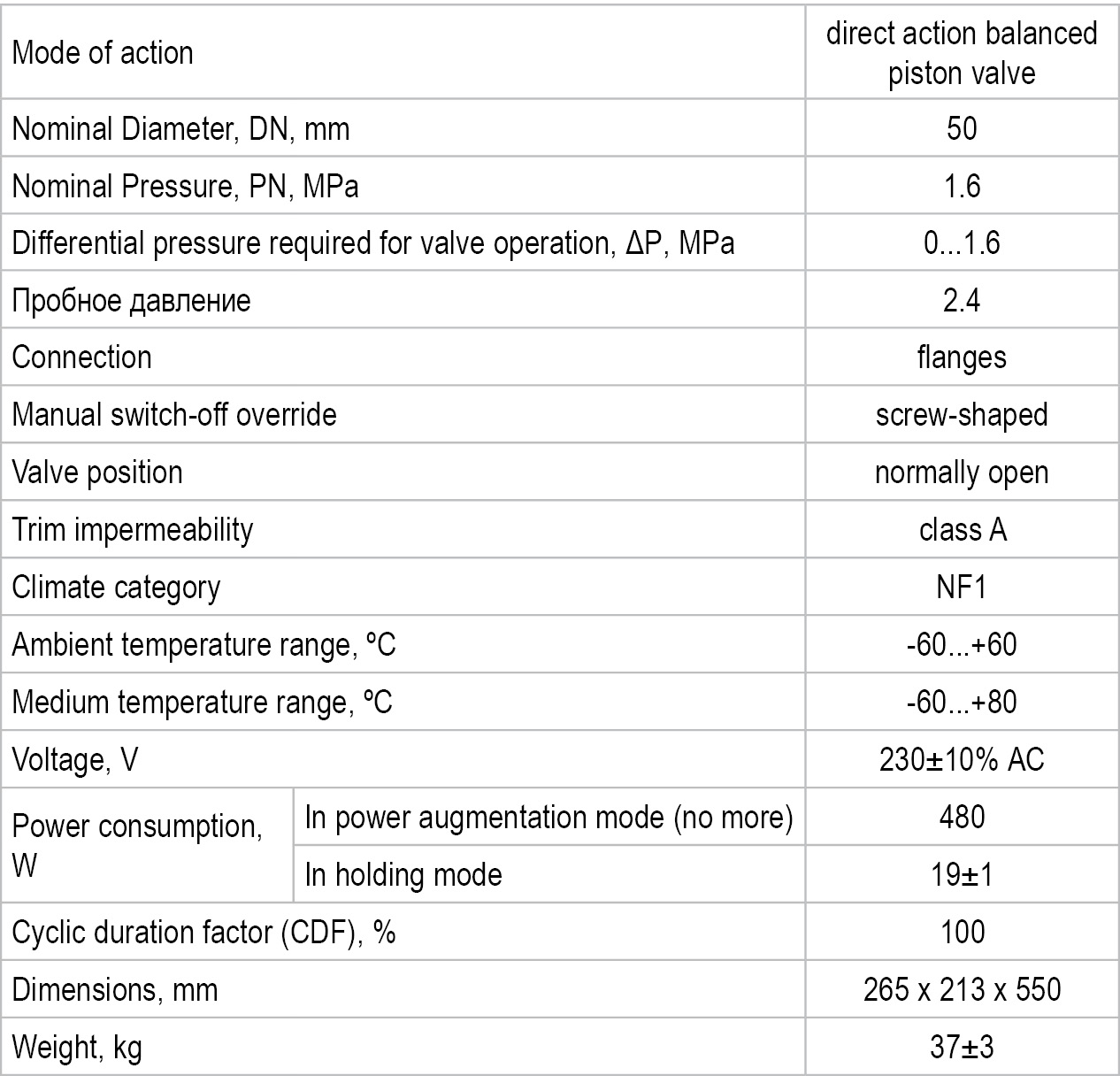 standard valve model: • gas, air, nitrogen, gaseous condensate.