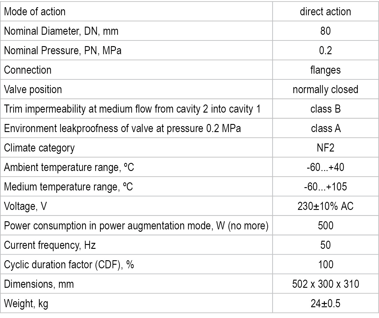 standard valve model: • transformer oil.